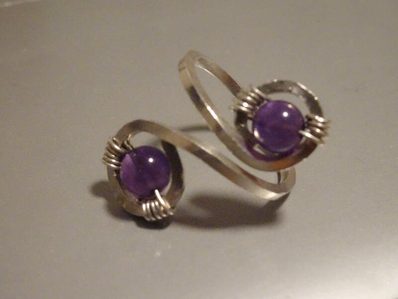 Ring amethist Zilver met 2 amethist kralen, verstelbaar, leuk speels effect. Momenteel te zien in het LOC Hardenberg Prijs: € 20 Collectienummer 2559